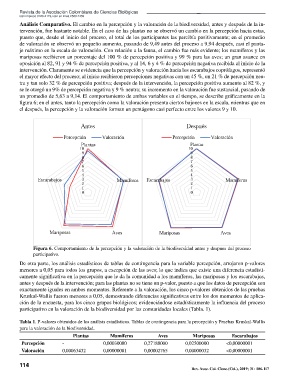 antes y después de la intervención; para las plantas no se tiene un p-valor, puesto a que los datos de percepción son