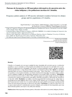 molecularmente una muestra indígena proveniente de dos etnias – Pijao y Nasa Paez, - y otra muestra de indivi-