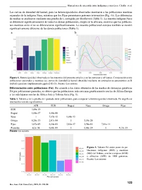 Tabla 1. Valores p de la prueba de t pareada entre poblaciones, para comparar la heterocigocidad observada. En negrilla se