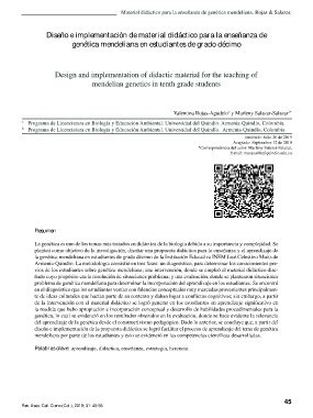 Material didáctico para la enseñanza de genética mendeliana. Rojas & Salazar.