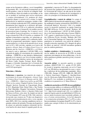 Uruguay y Colombia, fi nanciado por la Comisión Eu- Ancestría global. La ancestría genética se estimó