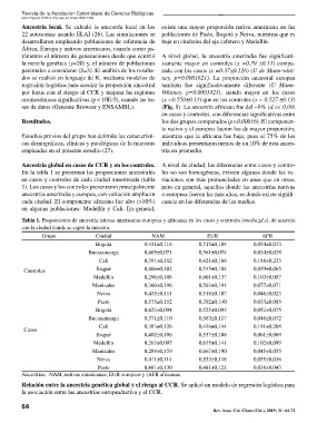 Tabla 1. Proporciones de ancestría nativas americanas europeas y africanas en los casos y controles (media±d.s), de acuerdo