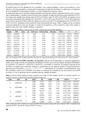 PCs calculados a partir de 87.359 SNPs. En la tabla 4 se muestran los resultados de las asociaciones con un SNP