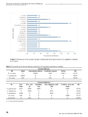 Tabla 3. Evaluación de los factores directos e indirectos VS la presencia de bacterias aisladas.