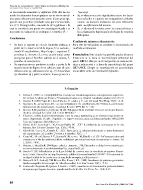 nico para infección por parásitos como Cyclospora sp., res evaluados y algunos microorganismos aislados