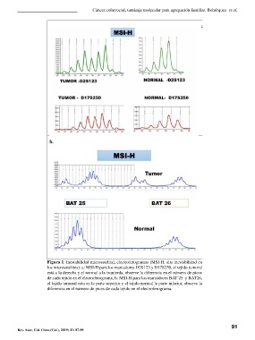 de cada tejido en el electroferograma; b: MSI-H para los marcadores BAT 25 y BAT26,