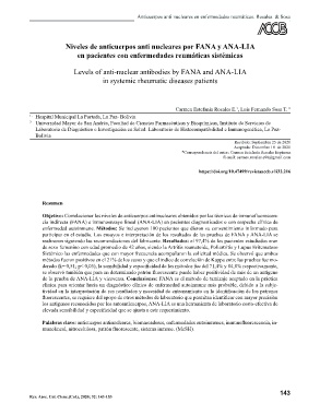 de la prueba de ANA-LIA y viceversa. Conclusiones: FANA es el método de tamizaje aceptado en la práctica