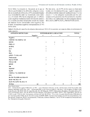 Tabla 2. Distribución específi ca de antígenos detectados por ANA-LIA en pacientes con sospecha clínica de enfermedad de