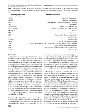 Tabla 5. Distribución específi ca de antígenos detectado por ANA-LIA y patrones de tinción de anticuerpos antinucleares