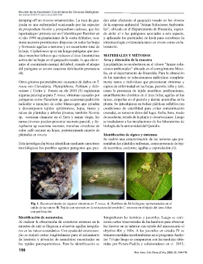 morfológicos los posibles agentes patógenos que pue- do necrótico, esclerote, agallas y esporulación (4).