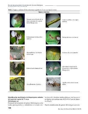Tabla 1. Signos y síntomas de las estructuras vegetales de T. rose en etapa de vivero