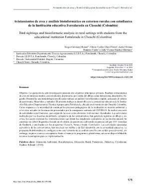 Avistamientos de aves y bioinformática para la enseñanza en Choachí. Bernal et al.