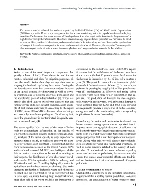 Keywords: Water contaminants, nanotechnology, sensors, fi lters, antibacterial surfaces, nanoparticles, nanocom-
